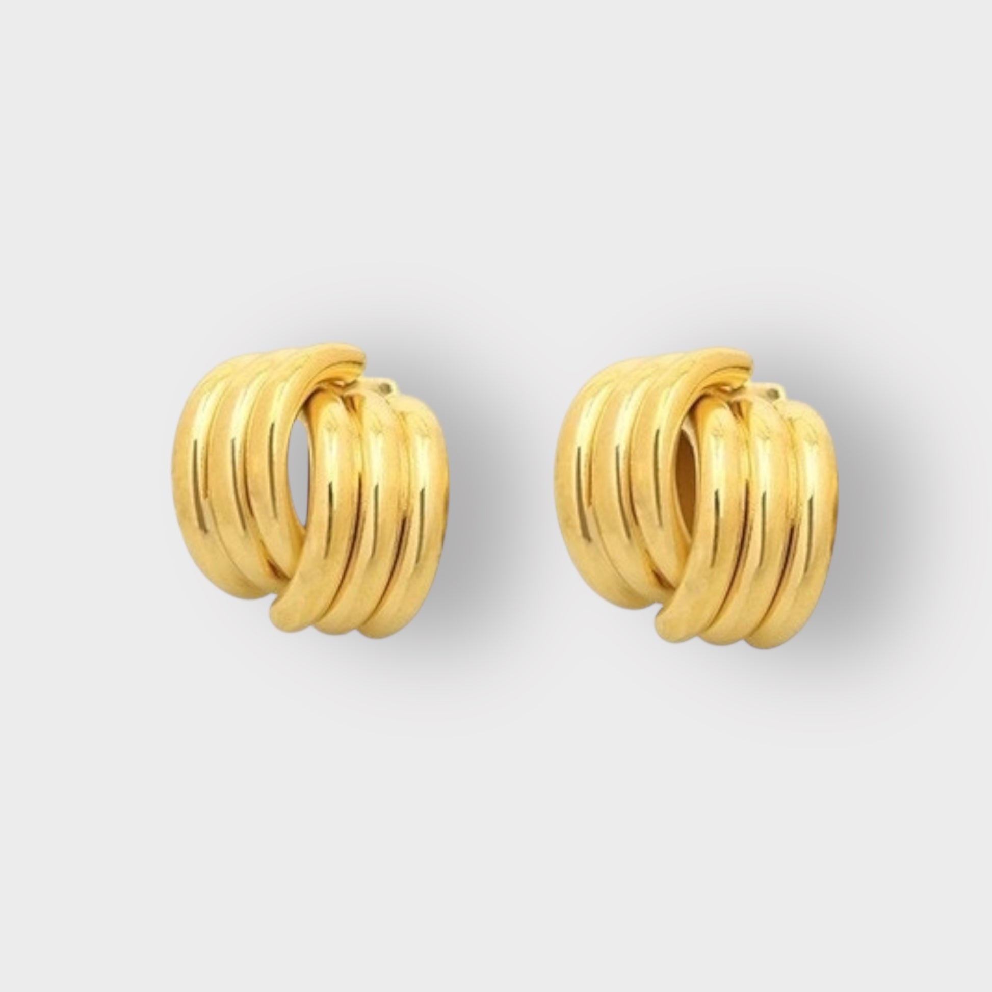 A vintage-inspired triple-band hoop earring with sculptural curves that shine from every angle. Simple, versatile, and timeless—perfect for both everyday wear and special occasions.